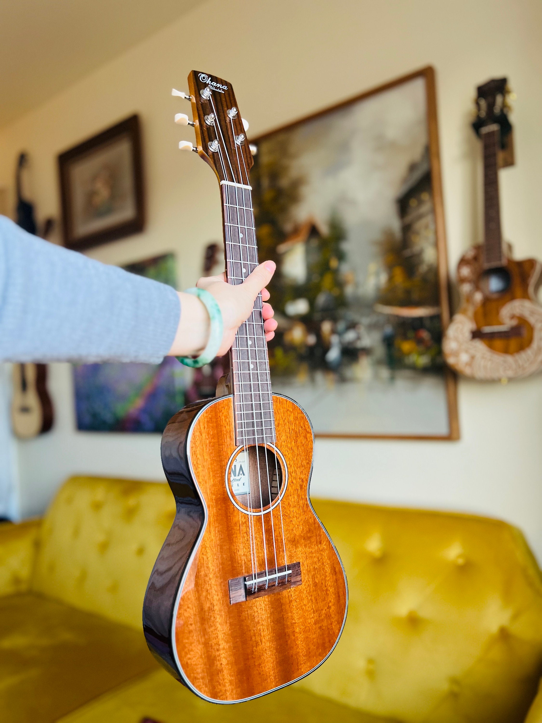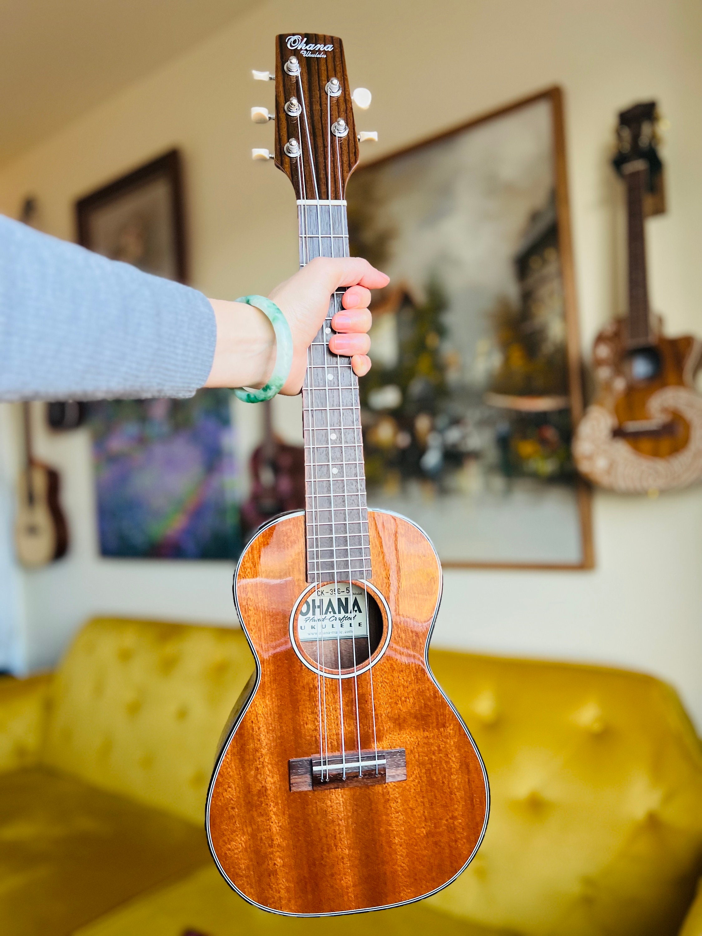 The Ohana 5-string is tuned Gg-C-E-A, with an added low-G.