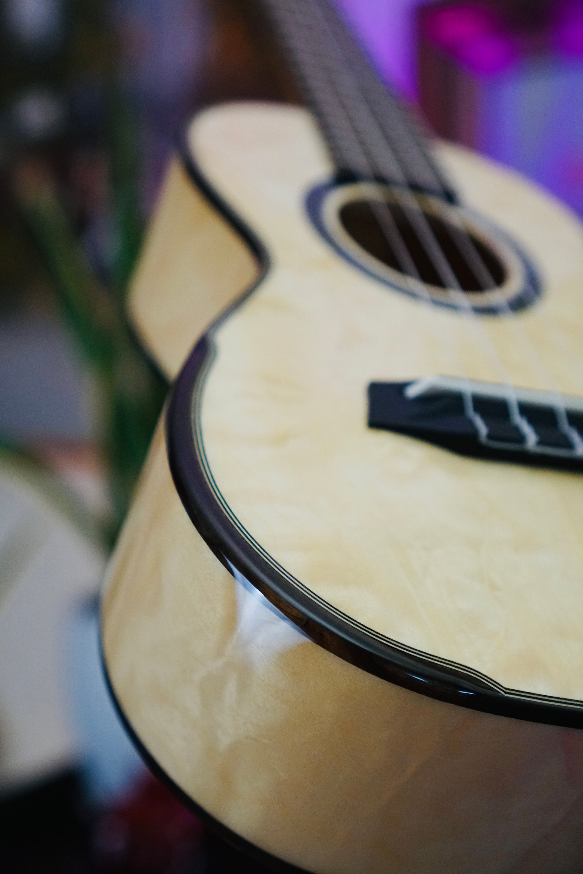 This gorgeous instrument is the best of both worlds— lovely thanks to the quilted eucalyptus and sturdy due to the laminate build.